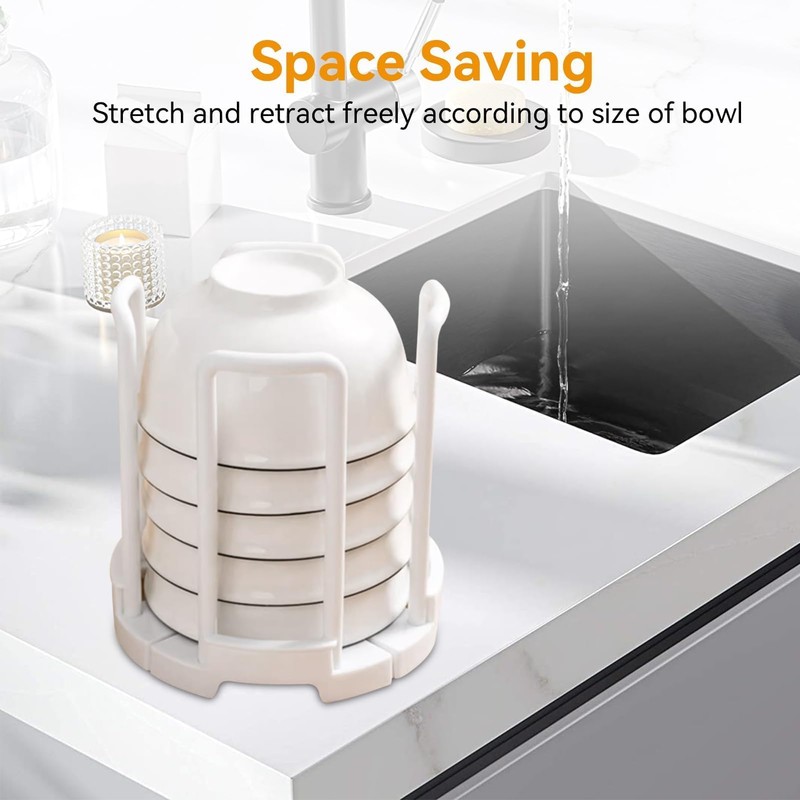 - RETRACTABLE DESIGN: This bowl organizer for kitchen cabinets can be retracted according to the size of the bowl, you can easily carry all the plates to the table in the dish racks for kitchen counter, more convenient and easy for you to pick up the bowl, can wipe down with damp cloth and towel dry.