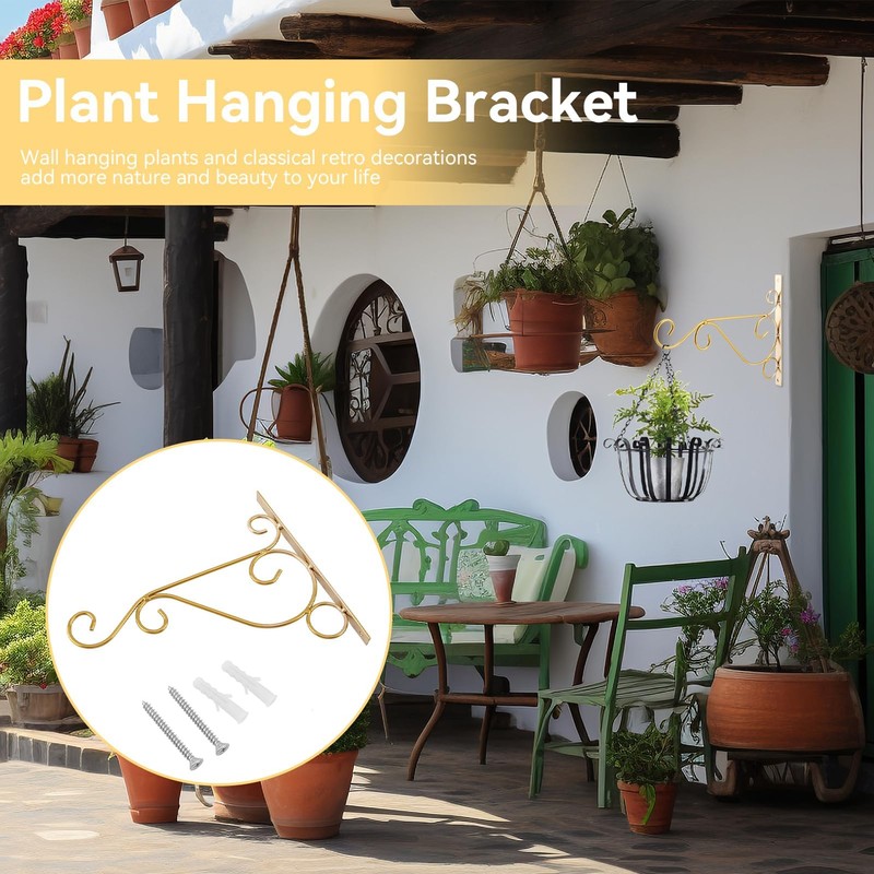 - Easy to Install: Simply attach Plants Bracket to the wall with the included screws. Package list: 1x Plant Hanging Bracket, 2 x Screws, 2 x Expansion Tubes, you can mount the Brass Plant Bracket/ plant hooks on wall, deck columns, wooden fence posts, very easy to use.