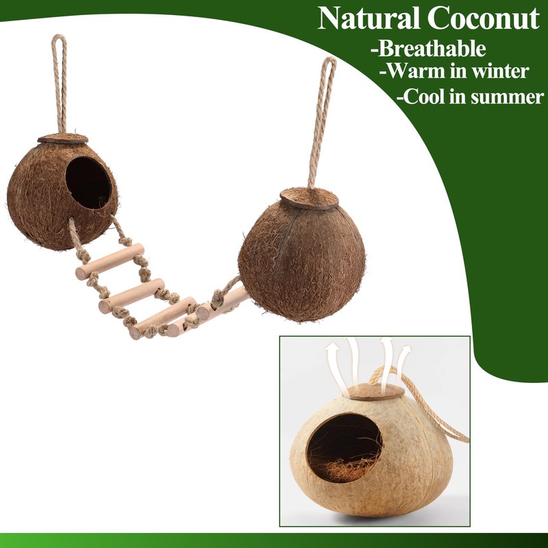 - 【Climb Ladder】The coconut shell nest provide a relax and recover place for lizards, they can isolates loud sounds, activity and bright light. Reptiles climb and play the ladder can release excessive or anxious energy to relieve stress.