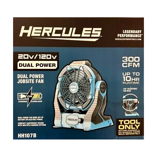 For use with a 20V HERCULES Battery, this fan can also be powered by a 120V extension cord.