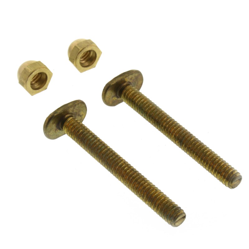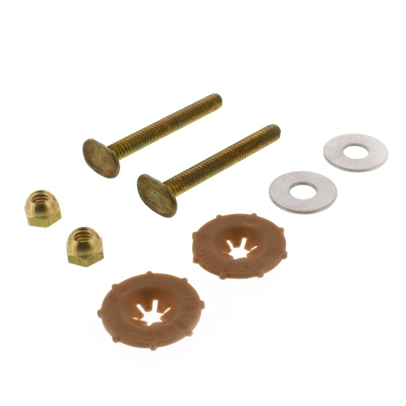 - Includes: (2) Brass Bolts, (2) Cap Nuts, (2) Stainless Steel Washers, (2) Plastic Washers