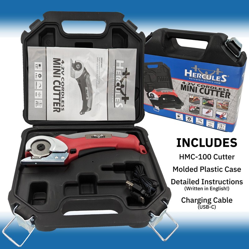 - Comes with Everything You Need! – The Hercules HMC-100 4.2-Volt Cordless Electric Mini Cutter kit comes with everything you need. The kit includes the HMC-100 cordless cutter, a durable molded plastic carrying/storage case, a USB-C charging cable, and detailed instructions that are written in English.