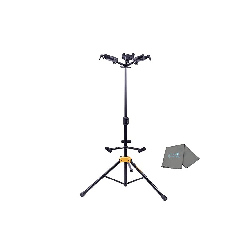 Hercules GS432B PLUS Triple Guitar Stand, Auto Grip System, Foldable Backrest, Fits Guitar Neck Sizes 1.57â - 2.05â, with a Lumintrail Cleaning Cloth