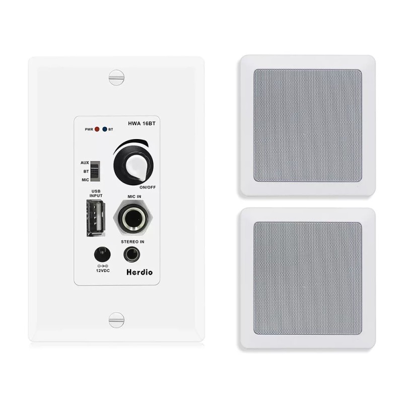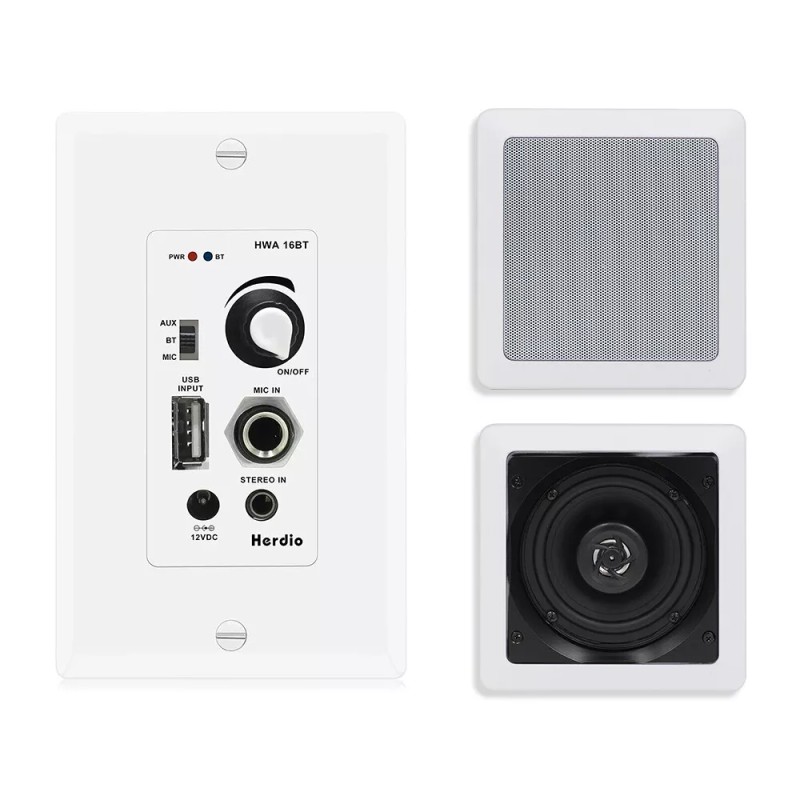 Herdio 5.25Inch Bluetooth Ceiling Speakers+Wall Mount Control Amplifier Receiver