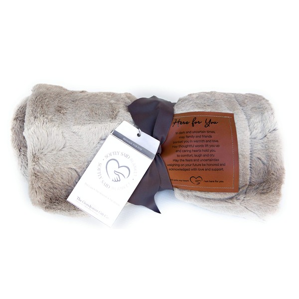 - PLUSH & SUPERIOR QUALITY :Made of durable, easy-care 100% polyester, this superior quality 50" x 60" blanket with faux fur front and light gray micro mink back comes with “Here For You” inspirational message printed on 5”x5" faux leather patch. The varied gray tones of the blanket can blend with most home décor styles, and can be used in any room. Makes a unique pick-me-up gift for anyone in need of hope and encouragement. The warmth and softness will always remind them that you are here