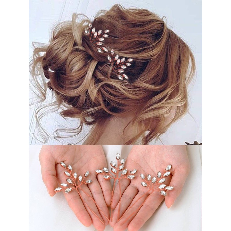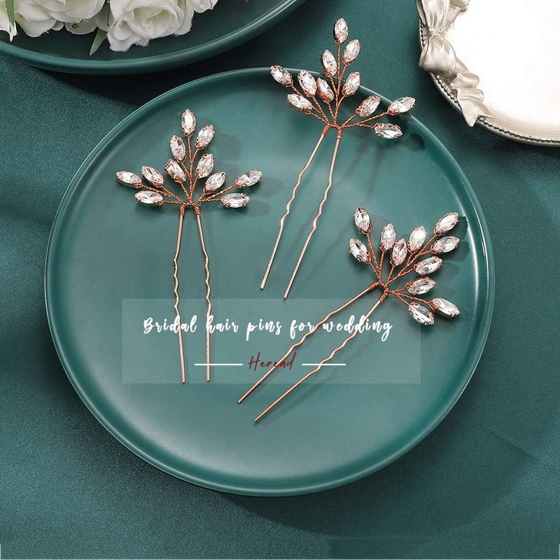 Heread Crystal Bride - Horquillas para el pelo de boda para mujeres y niñas (paquete de 3) (B oro rosa)