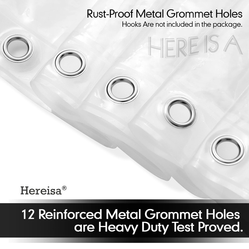 12 Reinforced stainless steel grommets ensure effortless installation on any rod (standard hooks/rings fit perfectly). The wrinkle-resistant surface wipes clean in seconds – no more scrubbing stubborn soap scum!
