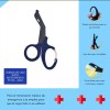 Para el tratamiento médico de emergencia y se emplea para que la ropa/tela no se adhieran a los heridos y sin girar el cuerpo, también se puede utilizar para cortar vendas medicas de gasa.