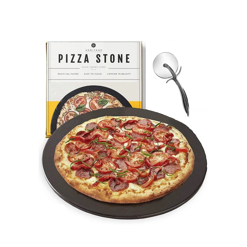 Heritage 15" Ceramic Pizza Non-Stick Stain Free Stone Set w/ Bonus Cutter