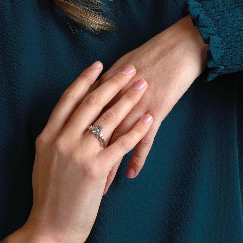 Heritage Dew Women's Sterling Silver Celtic Irish Claddagh Ring, Silver, J
