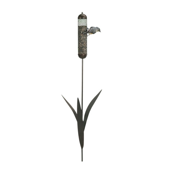 Clinging birds will love the Heritage Farms Cattail Wire Mesh Feeder. This 36 " tall feeder has steel construction with beautiful antique bronze powder coated finish. Fill with up to 1/2 lb of sunflower seed, peanuts or other large seed like cracked corn. The ¼” spacing of the steel mesh is ideally sized for dispensing sunflower seed, and provides a sturdy structure for birds to cling. Chickadees, nuthatches and finches will find this natural mesh feeder irresistible as well. Looks great in a cluster of three.