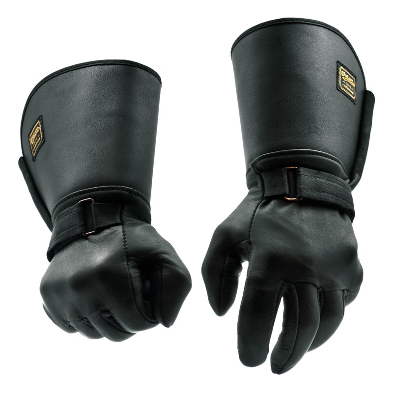 - GAUNTLET STYLE CUFF - Crafted with a gauntlet style cuff made from stiff cow leather for easy slip-on and to provide protection from cold air in harsh weather conditions.