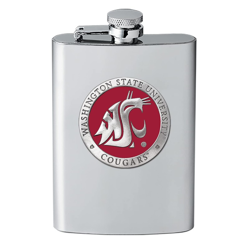 Heritage Pewter Washington State Cougars Flask | 8 Ounce Liquor Flask Container - Stainless Steel | Intricately Crafted Metal Pewter Alma Mater Inlay