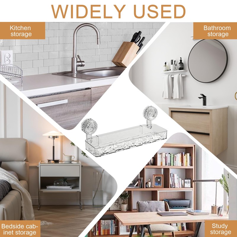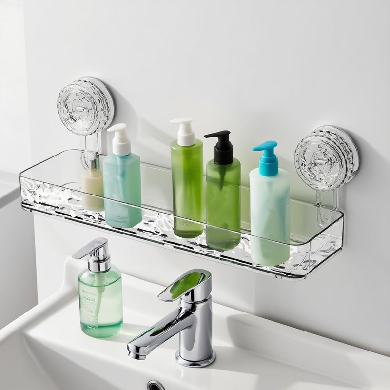 HERKINDNESS Duschablage Saugnapf, Transparent Shampoo Halterung für Dusche, 32 x 9 cm Duschgel Halterung Ohne Bohren, mit Saugnapf Ablage Dusche, für Badezimmer, Küche, Hotel