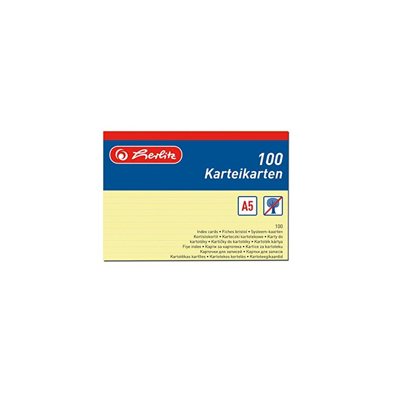 Herlitz A5 Ruled Index Cards - Yellow - Pack of 100