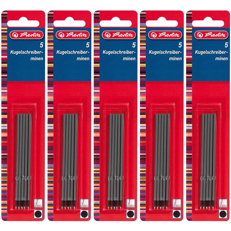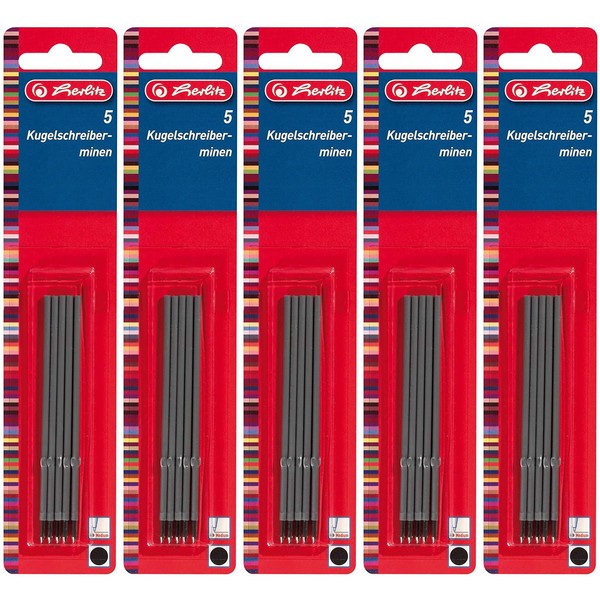 Herlitz Ballpoint Pen Refill X-20, Pack of 5 on Blister Card, Black (5 x Black)