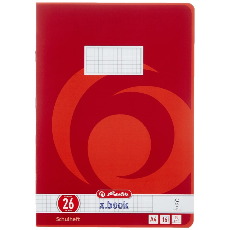 Schulheft. Ausführung Papier: holzfreies Papier, FSC Mixed, CO2 reduziert, 80 g/m². Ausstattung: ohne Lochung, geklammert. Runde Ecken, Extra starker Kartonumschlag. Papierformat: A4. Lineatur/Lineatur-Nr.: kariert mit Rand, 26. Anzahl der Blätter: 16 Blatt. Farbe des Einbandes: 8 Motive.