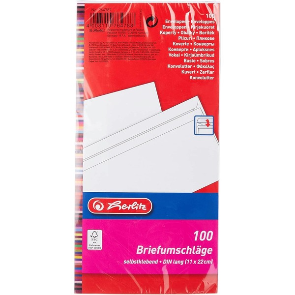 Herlitz Herlitz Briefumschlag DIN Lang Selbstklebend, 100 Stück mit Innendruck in Folienpackung, eingeschweißt, weiß