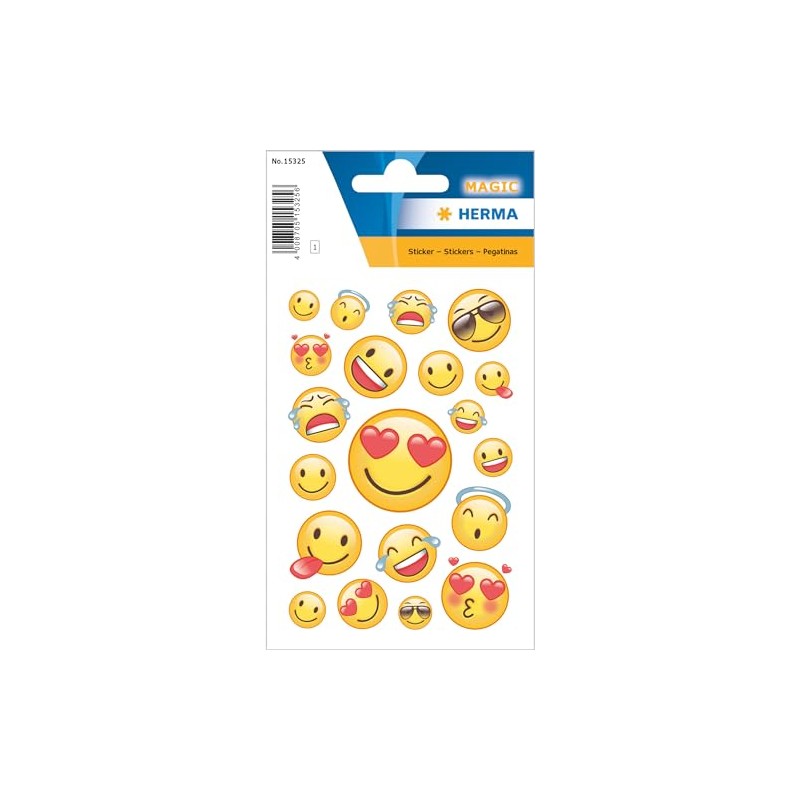 HERMA 15325 Happy Smile Transpuffy Plastic Transpuffy Permanent Stickers 1 Sheet / 19 Stickers