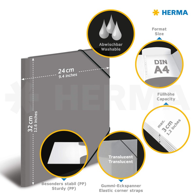 - Box contents: 3 x Herma portfolio (length/width/height): 32 x 24 x 0.4 cm, turquoise