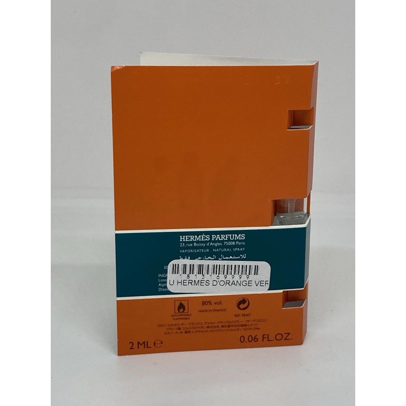 HERMÈS Hermes Eau D'Orange Verte 0.06 oz 2 ml EDC Spray Mini Travel Sample Vial