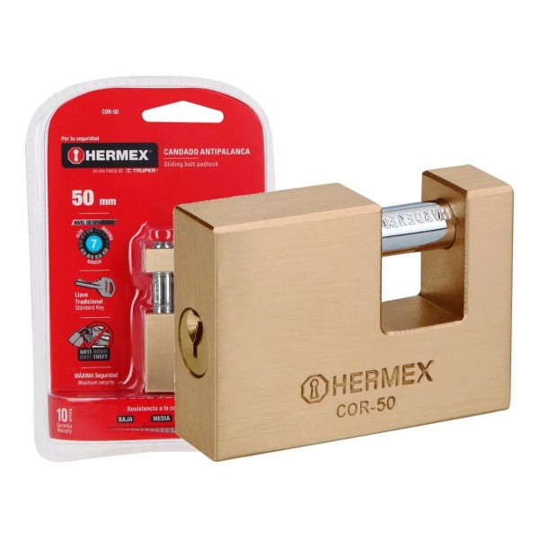 Hermex Candado Antipalanca 50 Mm Tradicional Hermex 43355 Color Dorado