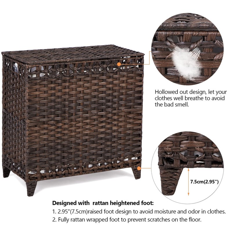 - Made of Rattan Heightened Feet: The laundry hamper is designed with heightened feet in order to prevent clothes/toys from getting wet and causing a bad smell. The heightened feet are covered by rattan in order to prevent floor scratches