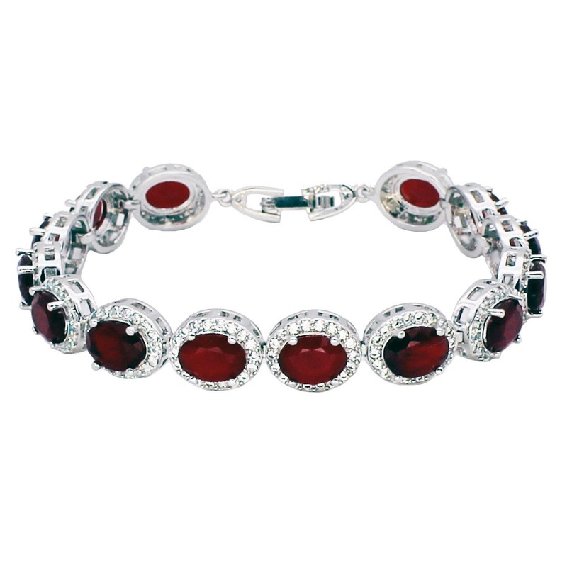 Hermosa Oval Ladies Tennis Bracelet Sapphire Ruby Emerald White Topaz Silver 7 inch (Ruby)