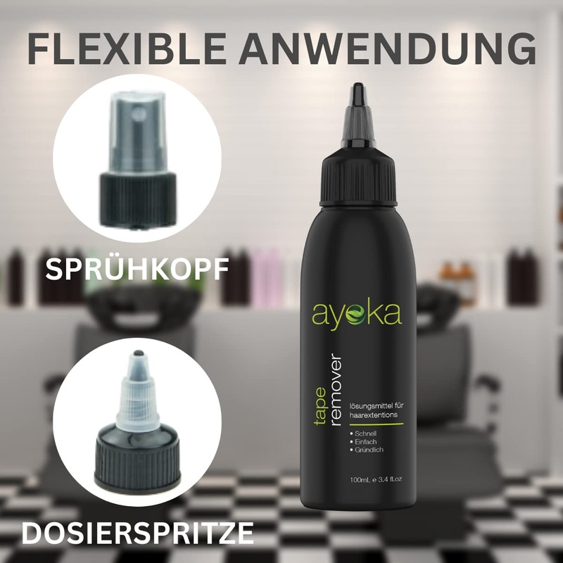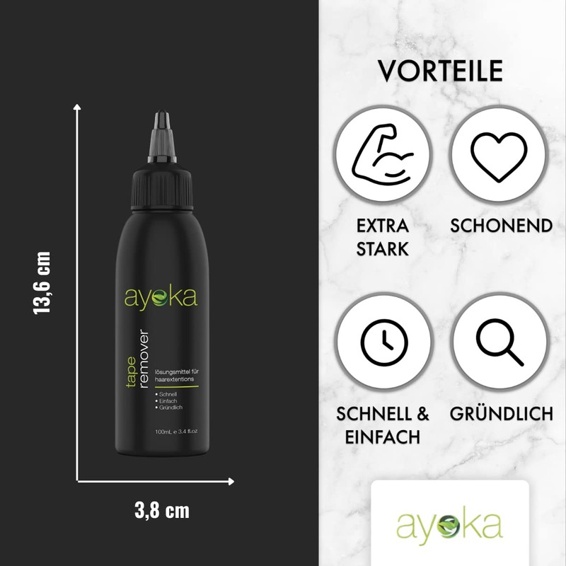 Specially developed for removing tape-in extensions. Effectively dissolves tape in extensions. Minimises adhesive residue. Gentle on your own hair thanks to panthenol and argan. Also suitable for other types of extensions such as bondings. Use: Note: Shake the bottle well before and during use again and again > 1. Separate hair so that you can get the tapes well, possibly Fix with a clip > 2. Place a cotton pad or piece of kitchen paper under the tape. 3. Drop a few drops from above between the tape INs> 4. Go between the tapes with the end of a comb and loosen the connection > 5. If the tape cannot be peeled off, repeat steps 3 and 4 > On possibly If there is any remaining adhesive residue, you can add a little remover and then comb out. Very fine residues from bonding are gone after washing hair. After removal, wash your hair thoroughly, preferably with a deep cleansing shampoo so that the new extensions can hold perfectly.