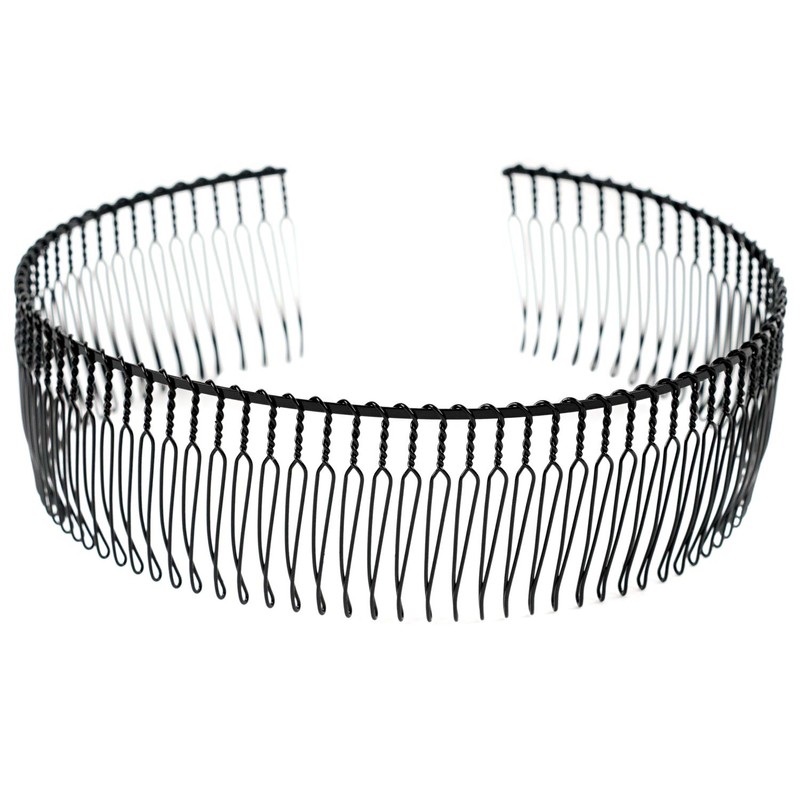 Hero Headband with Comb Black 35mm Wide Japanese Metal A50