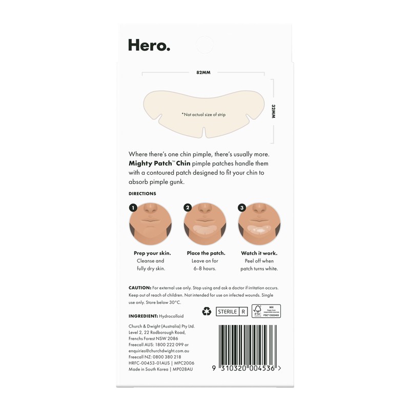 - CONTOURED FIT FOR CHIN BREAKOUTS: Specifically designed to cover and treat multiple chin pimples. the Hero Mighty Patch Chin patch provides a contoured fit to absorb pimple gunk.