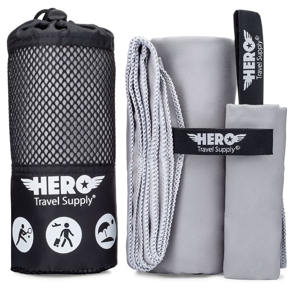 Hero Travel Supply Toalla de playa grande de microfibra compacta para viajes (gris, 24 x 48)