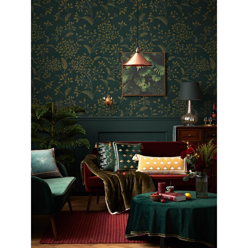 - DESIGN--Dark green and gold wallpapers, beautiful floral patterns, and the golden floral parts have a very slight luster and texture. The floral pattern is very delicate, and it will match and blend well with the original decorations in the home.