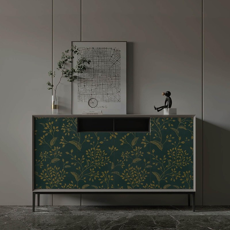 Heroad Brand Peel and Stick Wallpaper Dark Green and Gold Wallpaper Boho Peel and Stick Wallpaper Floral Contact Paper Leaf Removable Wallpaper Self Adhesive for Cabinet Shelf Liner Vinyl 118" x 17.3"
