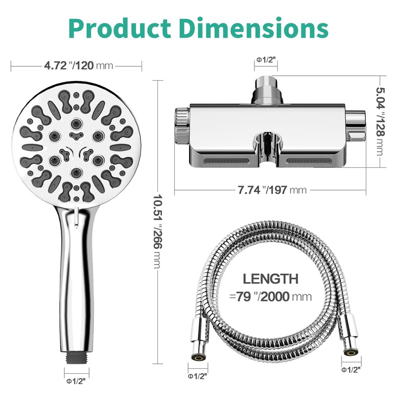 - 【Extra Long Shower Hose】This multi-functional high pressure shower head has a 79" extra long hose, which is flexible and lightweight. It also increase the cleaning range, allowing you to easily reach hard to clean corners. It is made of high quality stainless steel, which can effectively resist corrosion and fading. In addition, the hose adapts a double lock design with a built-in waterproof gasket for a tight seal and to reduce the possibility of leaks.