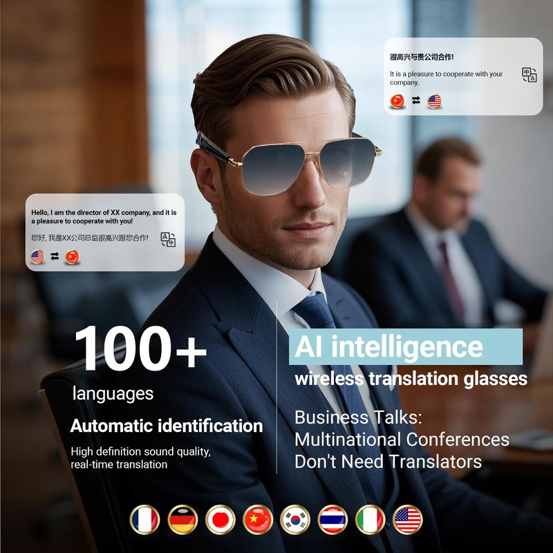 - 【Real-time AI Translation】: Easily break down language barriers with AI Smart glasses. Supports multi-language translation for face-to-face conversations, international conferences, and more.