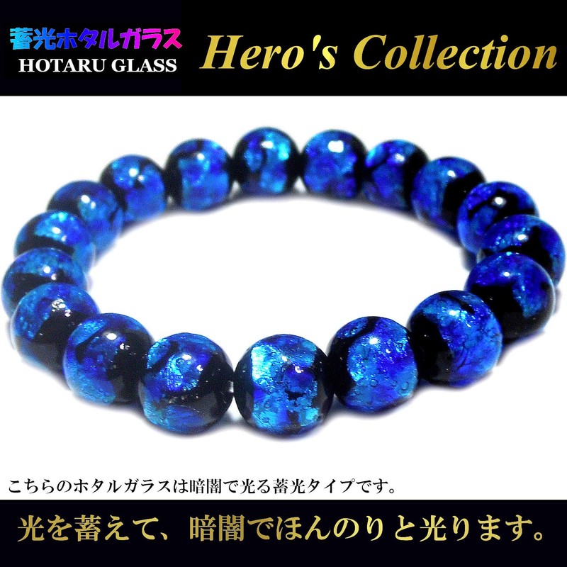 Heroes Glow in the Dark Luminous Firefly Glass 12mm Bracelet, Mysterious Cobalt Blue, Glass