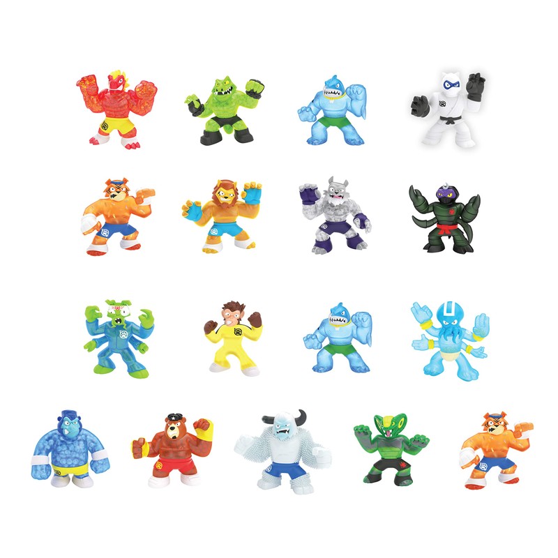 - Includes 2 x exclusive goo jit zu heroes: thrash the Super stretchy shark and rockjaw the crunchy crocodile