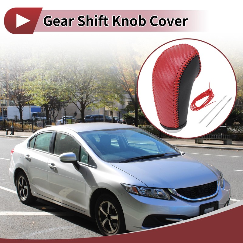 HEROFFIX 1 Pc Gear Shift Knob Cover for Subaru Forester 2014-2017 Stick Shifting Handle Protector Red Carbon Fiber Black Faux Leather