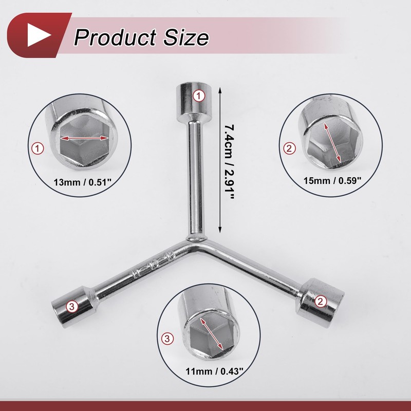HEROFFIX 1 Pcs Socket Wrench Spanner Socket Remover 7.4cm Carbon Steel Hexagon 11mm 13mm 15mm for Car Motorcycle Dirtbike Y Shaped 3 Way Wrench Sleeve