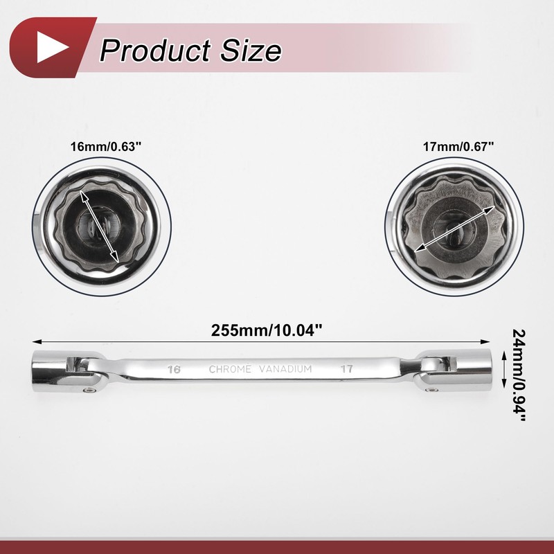 Socket Spanner Size: 255x24mm/10.04"x0.94"(L*W)