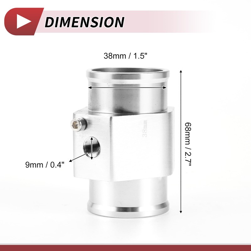 HEROFFIX 1 Set Car Water Coolant Temperature Sensor Adapter Joint Pipe Radiator Sensor Adaptor 38mm Silver Tone