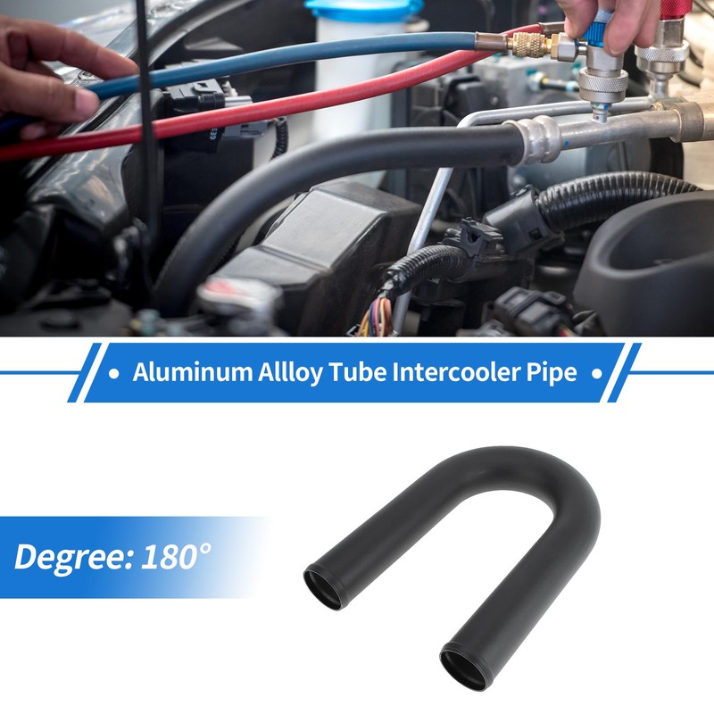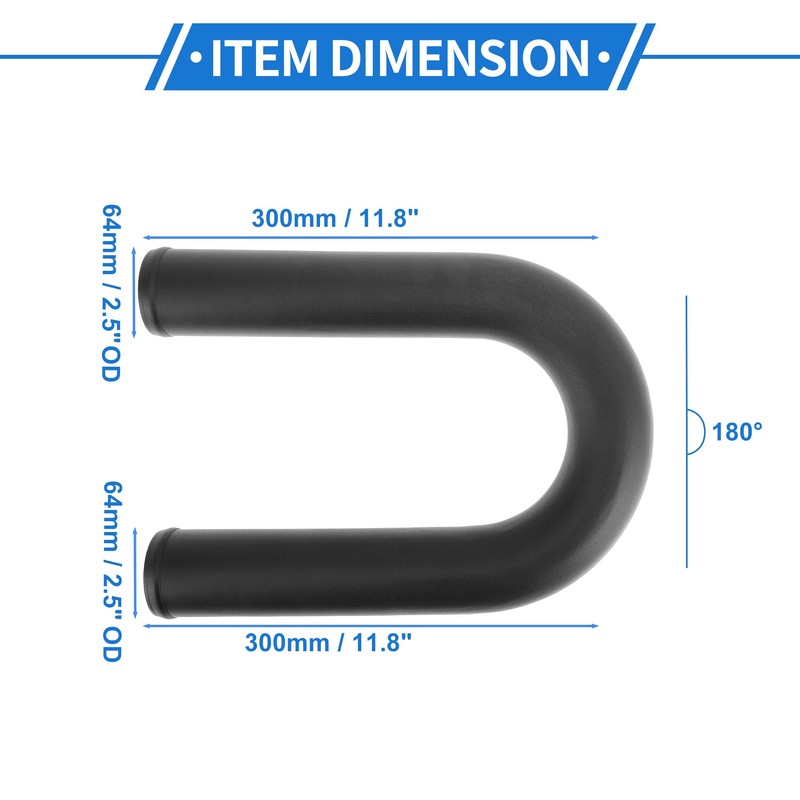 - Aluminum Alloy Intercooler Pipe Size: Tube Angle: 180 Degree U Bend; Outer Diameter: 64mm / 2.5"; Leg Length: 300mm / 11.8"; Wall thickness: 1.8mm / 0.07"; Tube design: With Double Bead Roll; Tube Technical Treatment: Surface Blasting