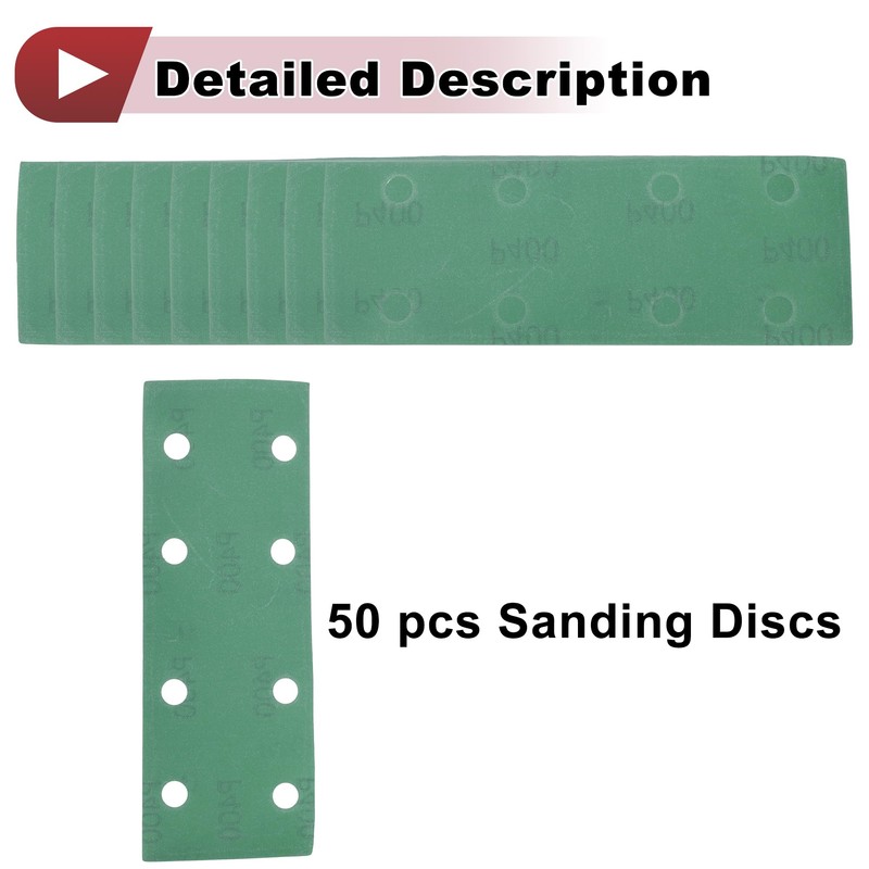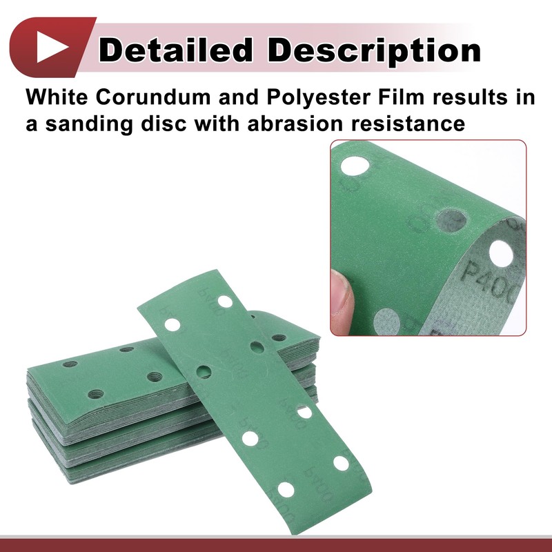 HEROFFIX 50 Pcs Sanding Discs Wet Dry Waterproof Hook & Loop Sandpaper for Woodworking, Automotive Refinishing 7.80"x2.76" 8 Hole 400 Grit Green White Corundum