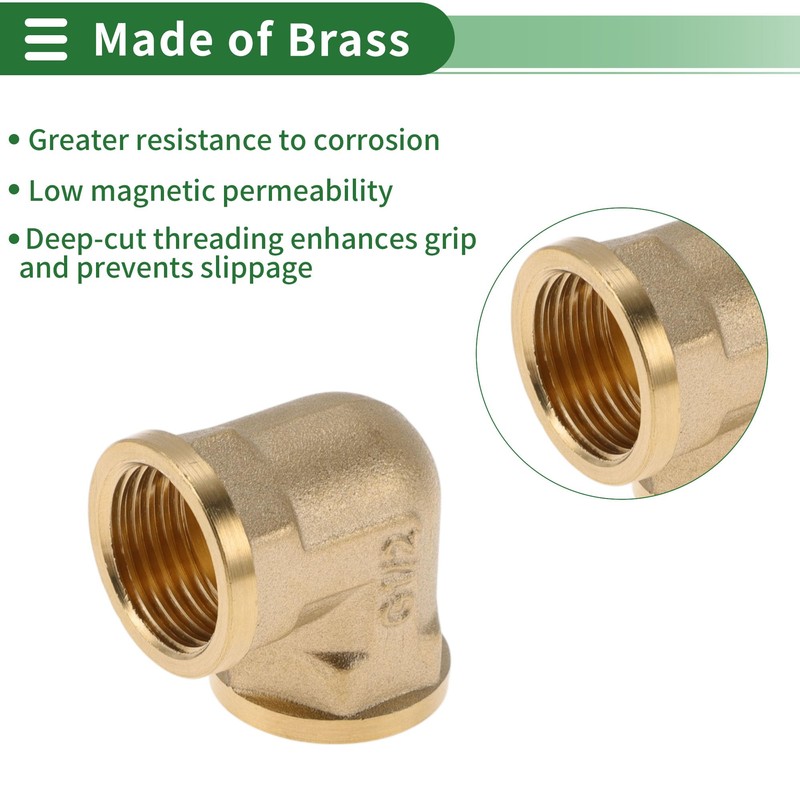 HEROFFIX Brass Pipe Fittings 1/2" Female Thickened Internal Thread Elbow (Square Type) 1.26" 2 Pcs