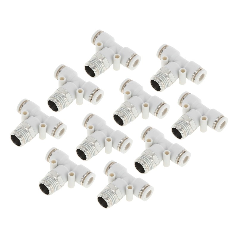 HEROFFIX Push to Connect Air Fittings 1/4" t Type Air Line Quick Joint Plastic Metal 1/4"BSPT 10 Pcs White Silver Tone