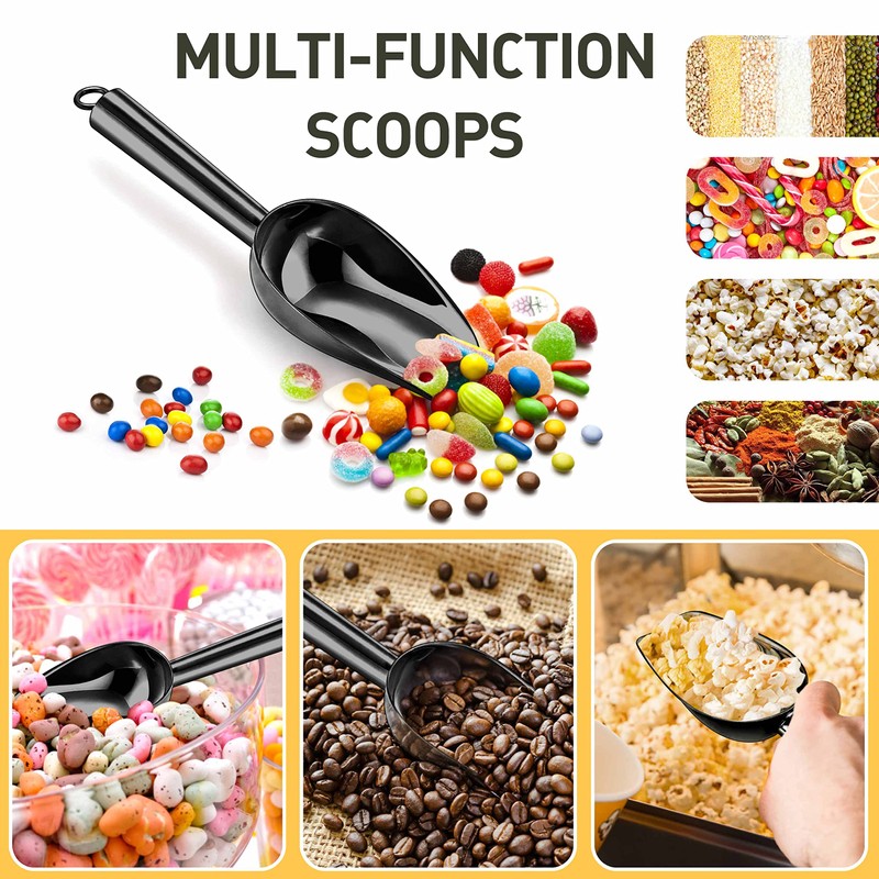 - Multi-application, 2 pieces 3oz functional scoops would meet your daily needs, perfect for scooping ice cubes, candy, dry goods, sugar, spices, popcorn, coffee beans, rice, grain, flour, pet food, also a great helper for various occasions, like party kitchen restaurant bar