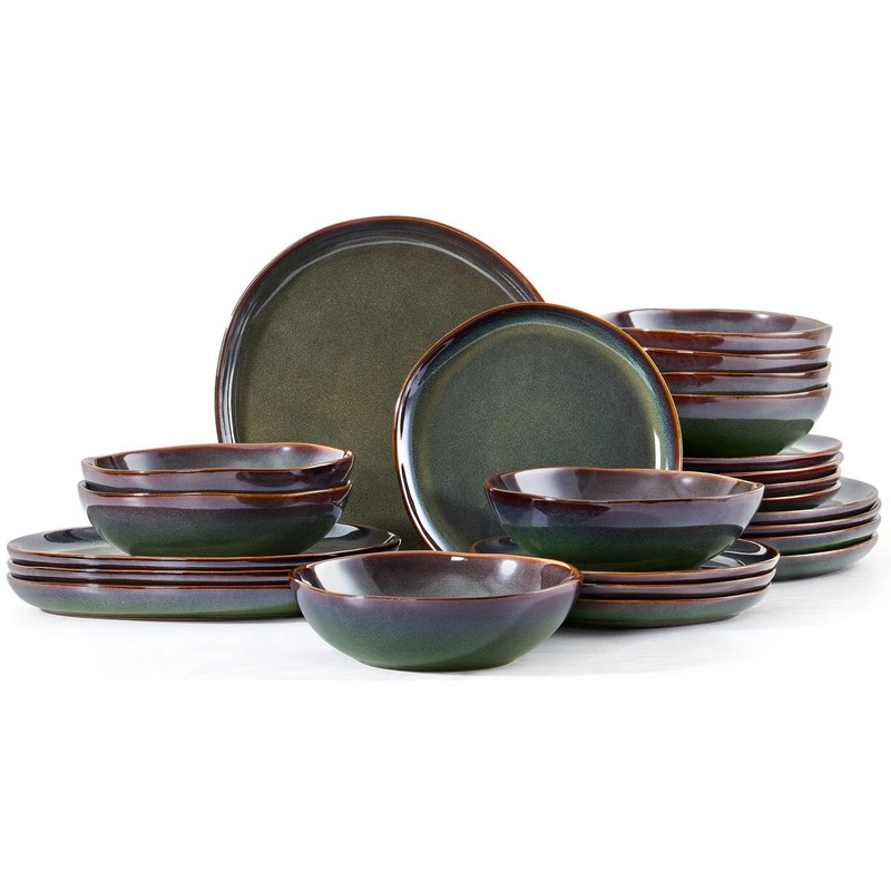 Herogo Stoneware Dinnerware Sets for 8, 24 Piece Plates and Bowls Dish Set, Irregular Handmade Dinner Ware Dishware for Kitchen Dinning, Microwave & Dishwasher Safe, Lichen Green