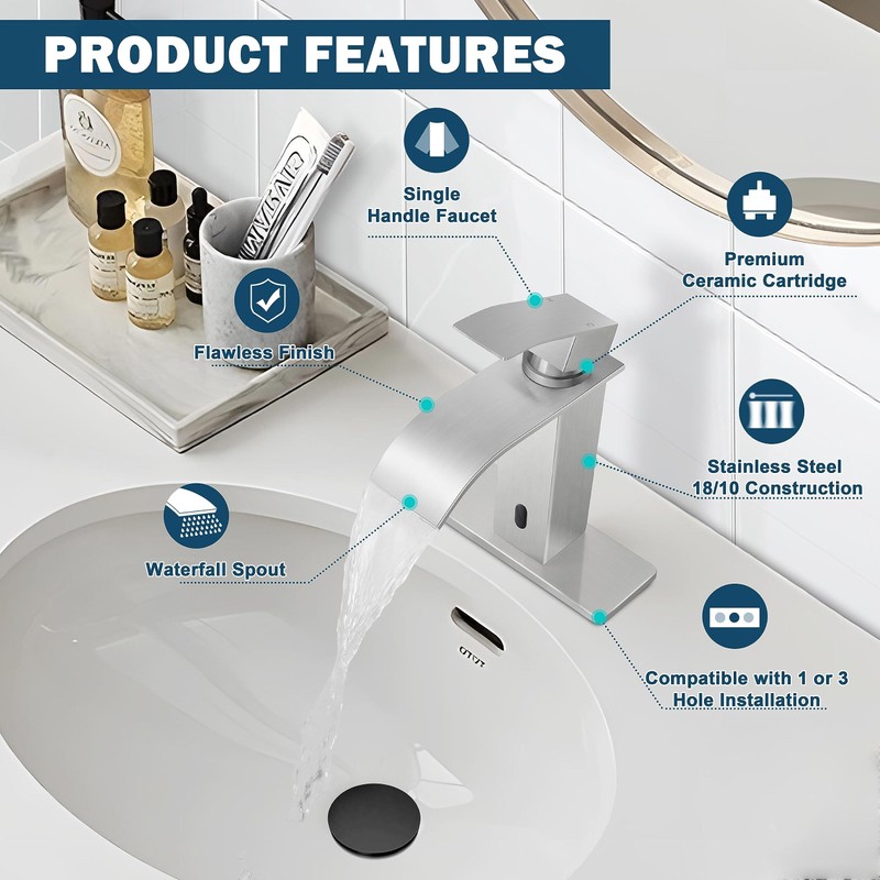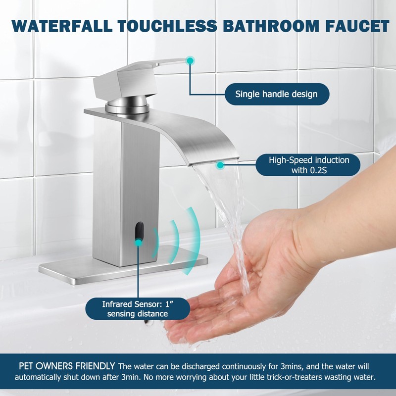- Quick sensor & Water saving, automatic motion sensor bathroom faucet adopts high-speed infrared induction makes it more stable, precise, hands-free technology reducing the risk of cross-infection. Quick sensor within 0.2s and automatic water cut in 3 minutes, no need to worry for water wasting by mistake, pet friendly.