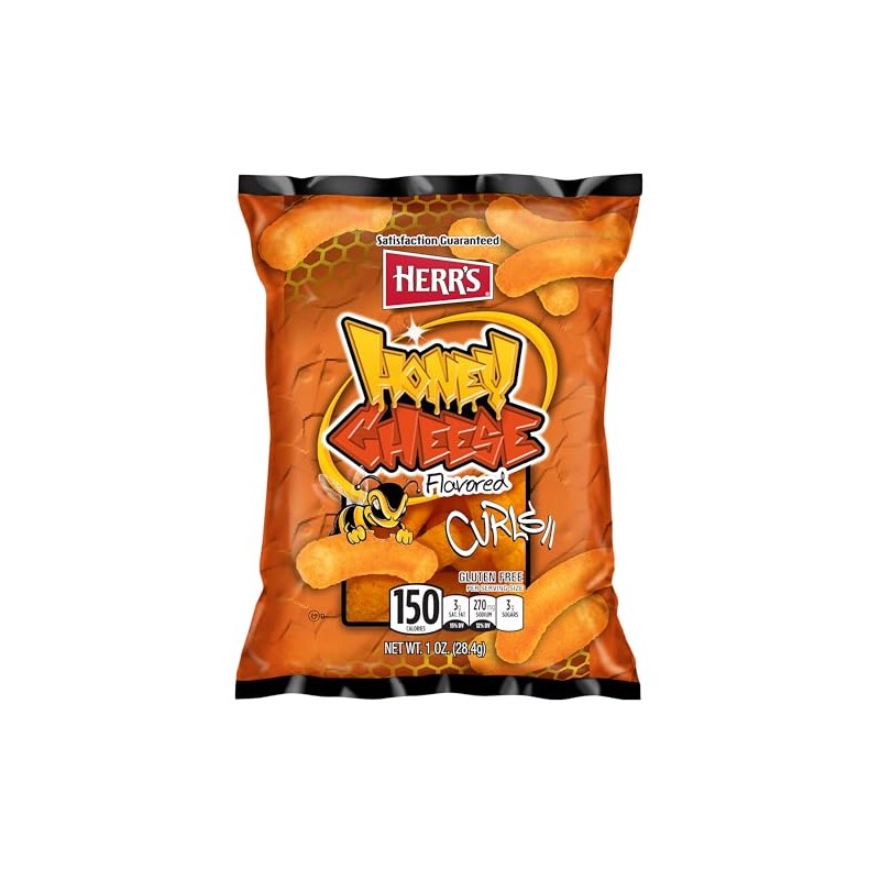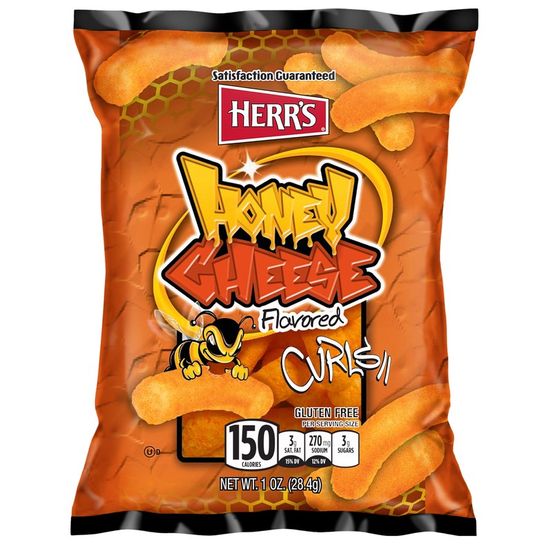 Herr’s Cheese Curls, Honey Cheese Flavored, Gluten Free Snacks, 1oz Bag (7 Count)